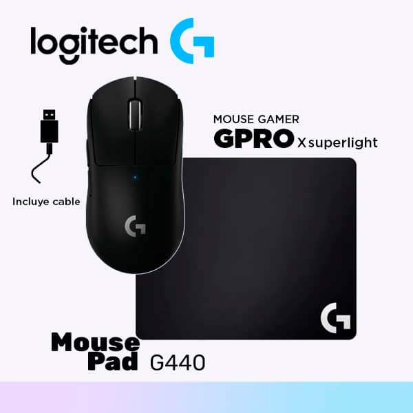 Combo 1 (Mouse LOGITECH G PRO X SUPERLIGHT WIRELESS LIGHTSP + MOUSEPAD LOGITECH G440 HARD MEDIUM BLACK )