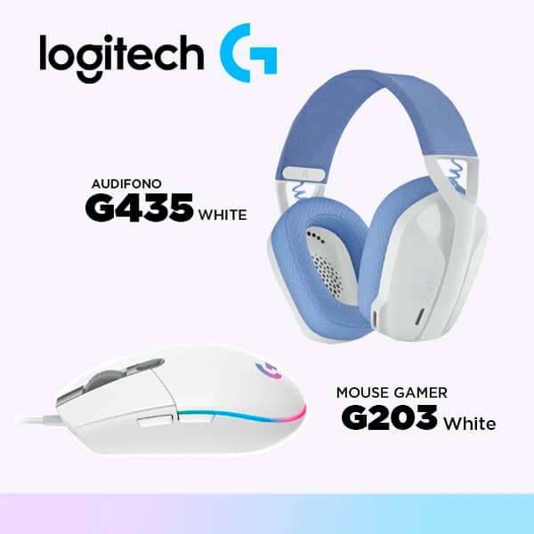 Combo 2 (AUDIFONO C/MICROF. LOGITECH G435 LIGHTSPEED BLUETOOTH WHITE + MOUSE LOGITECH G203 LIGHTSYNC OPTICAL 8000 DPI RGB WHITE)