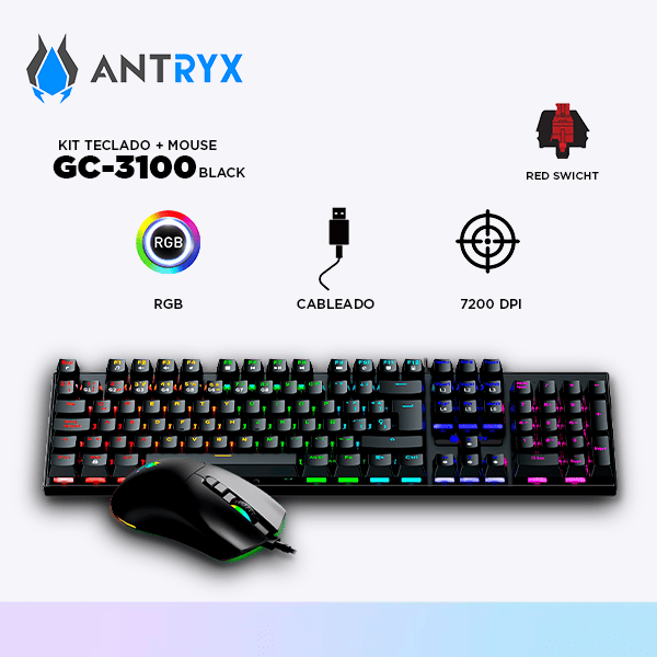 Teclado y Mouse: KIT GAMING TECLADO + MOUSE ANTRYX GC-3100