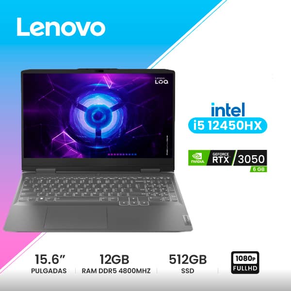 LAPTOP-NOTEBOOK LOQ 15IAX9 15.6″ IPS/ INTEL i5-12450HX 4.4GHZ/ RTX 3050 6GB / RAM 12GB DDR5 4800MHZ SO-DIMM (1X12)/ SSD 512GB M.2 pcie.4.0/ FULLHD / FREEDOS