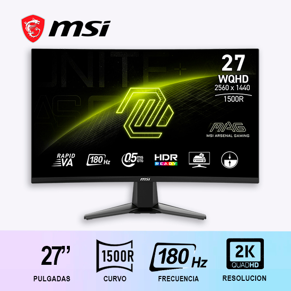 MONITOR GAMER MSI MAG 27CQ6F 27″/ 2k/ 180hz/ curvo/ va