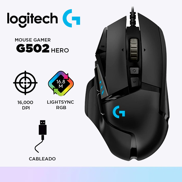 MOUSE LOGITECH G G502 HERO 16000 DPI RGB BLACK